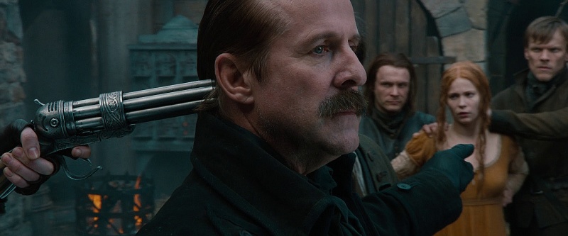 Gretel uses her revolver to threaten Sheriff Berringer as he wants to kill Mina.